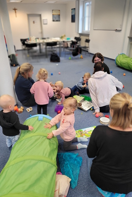 - Wöchentliche Gruppentreffen für 2 Stunden mit Kindern (ab 10 Monaten bis zum Kindergartenalter)